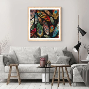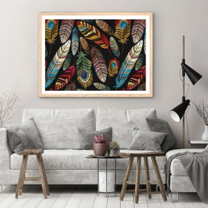 Plakat i ramme af lyst egetræ - Fuglekarneval - 70x100 cm