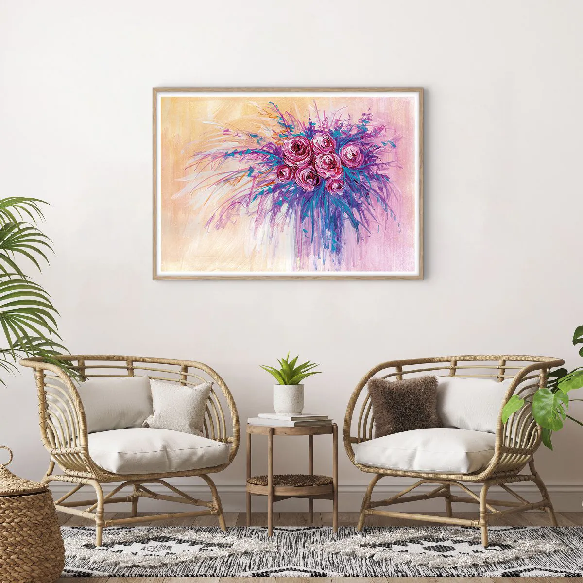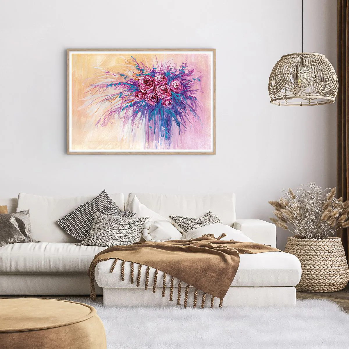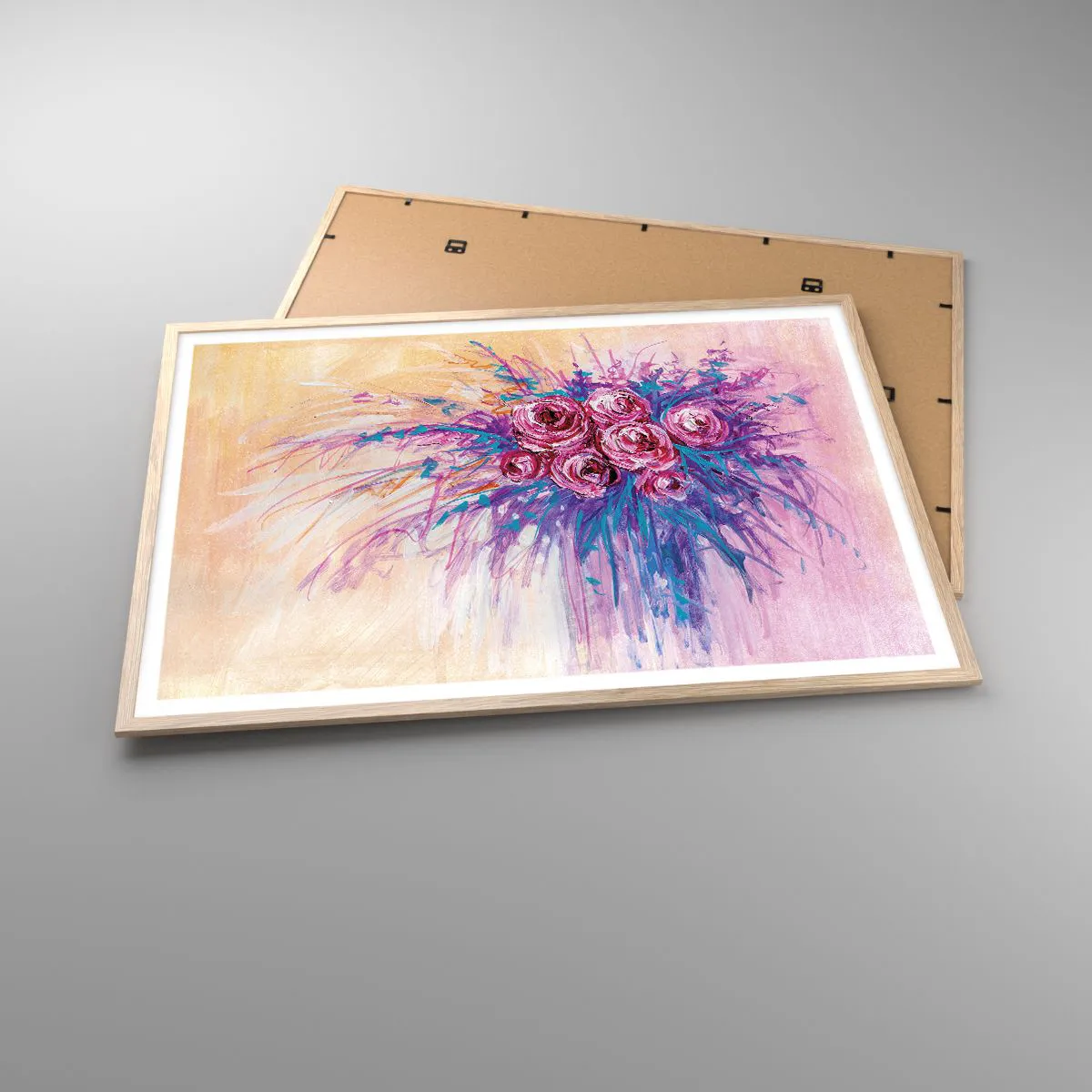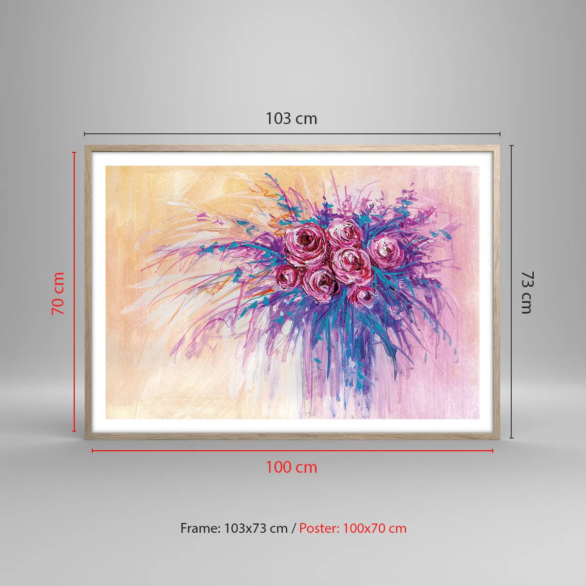 Plakat i ramme af lyst egetræ - Rose springvand - 100x70 cm