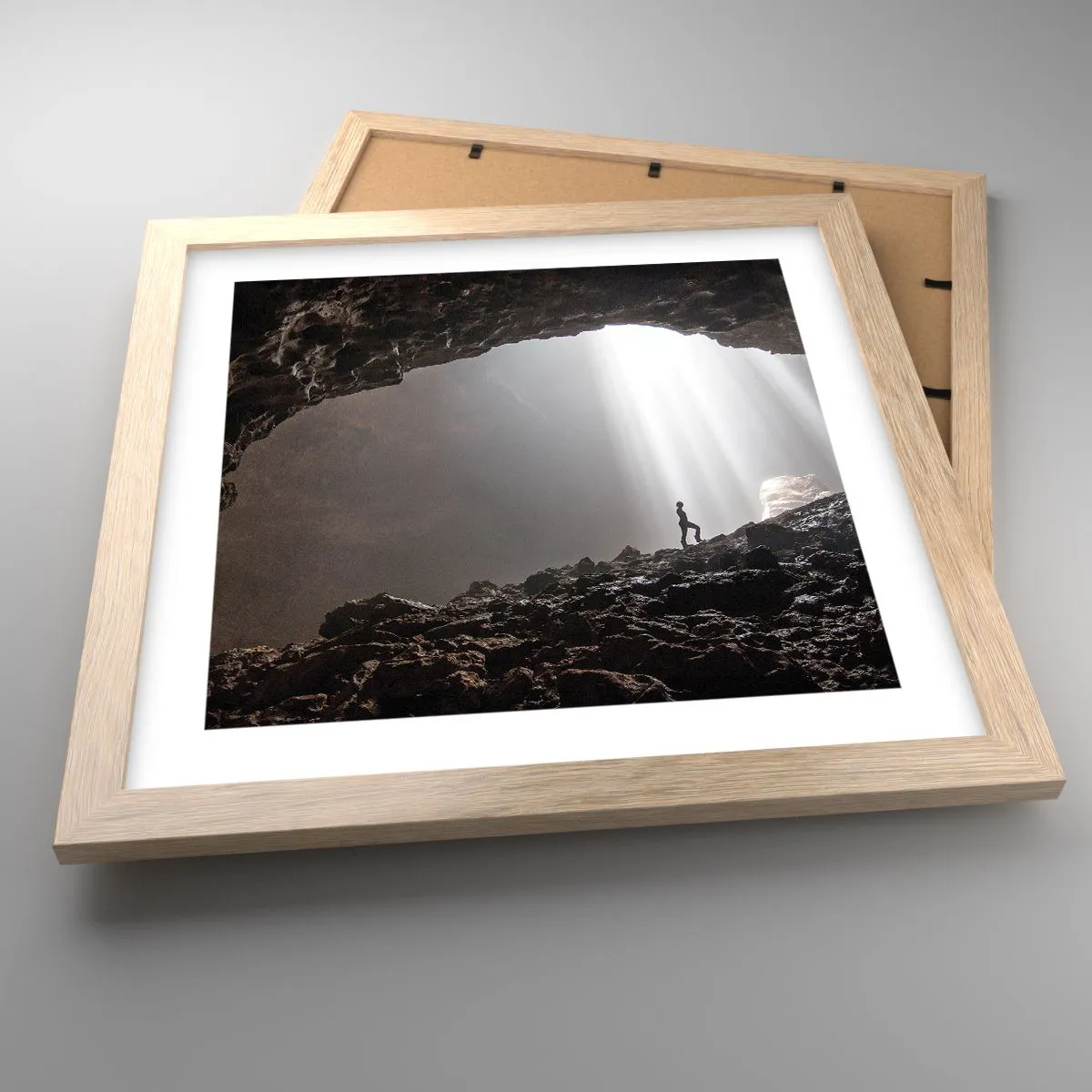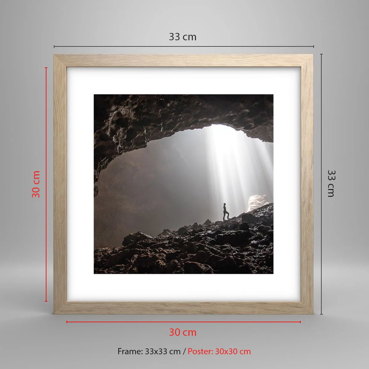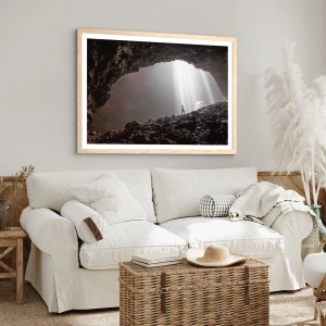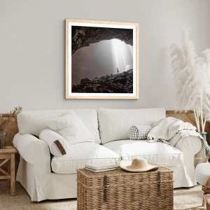 Plakat i ramme af lyst egetræ - Lysende grotte - 30x30 cm