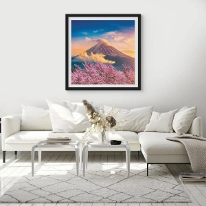 Plakat i sort ramme - Fuji-bjerget omgivet af kirsebærblomster ved solnedgang - 50x70cm - Japansk hellighed - Moderne vægdekoration til stue og soveværelse ARTTOR