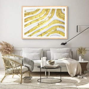 Plakat i ramme af lyst egetræ - Sammensætning i hvidt og guld - 50x50 cm