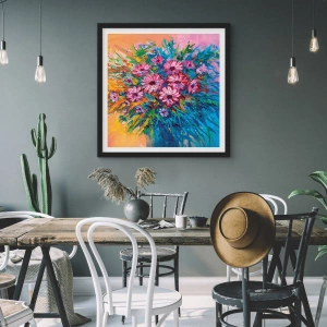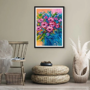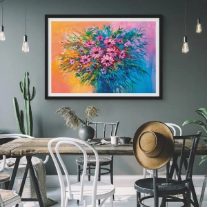 Plakat i sort ramme - En buket af intenst farvede blomster på en abstrakt baggrund - 50x70cm - Livets energi - Moderne vægdekoration til stue og soveværelse ARTTOR