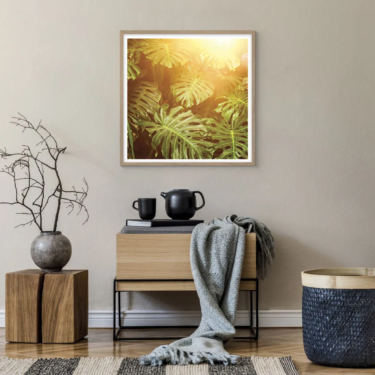Plakat i ramme af lyst egetræ - Træd ind i det grønne... - 60x60 cm
