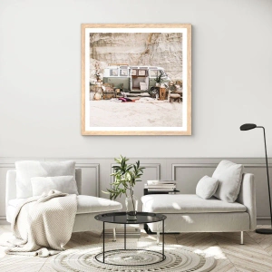 Plakat i ramme af lyst egetræ - Tid til at starte rejsen - 91x61 cm