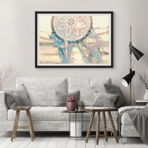 Plakat i sort ramme - En drømmefanger i blonder i gløden fra den nedgående sol med en lys baggrund - 50x70cm - Totem med blonder - Moderne vægdekoration til stue og soveværelse ARTTOR