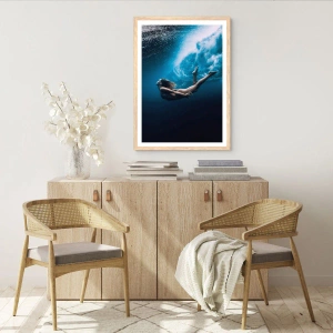 Plakat i ramme af lyst egetræ - Den moderne havfrue - 70x50 cm