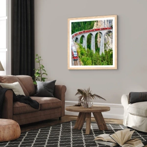 Plakat i ramme af lyst egetræ - Udsigt over bjergene til gengæld - 50x50 cm