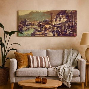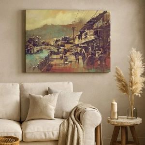 Lærredet er spændt op over rammen. Siderne og kanterne trykkes for at danne en fortsættelse af billedet. Maleriet er klar til at blive hængt op på væggen. Hvert produkt har en bøjle, der er fastgjort til rammen, og et samlesæt (skrue + dyvel).