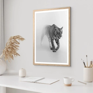 Plakat i ramme af lyst egetræ - Krybende i tågen - 91x61 cm