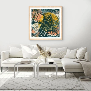 Plakat i ramme af lyst egetræ - Løvrig fantasi - 50x50 cm
