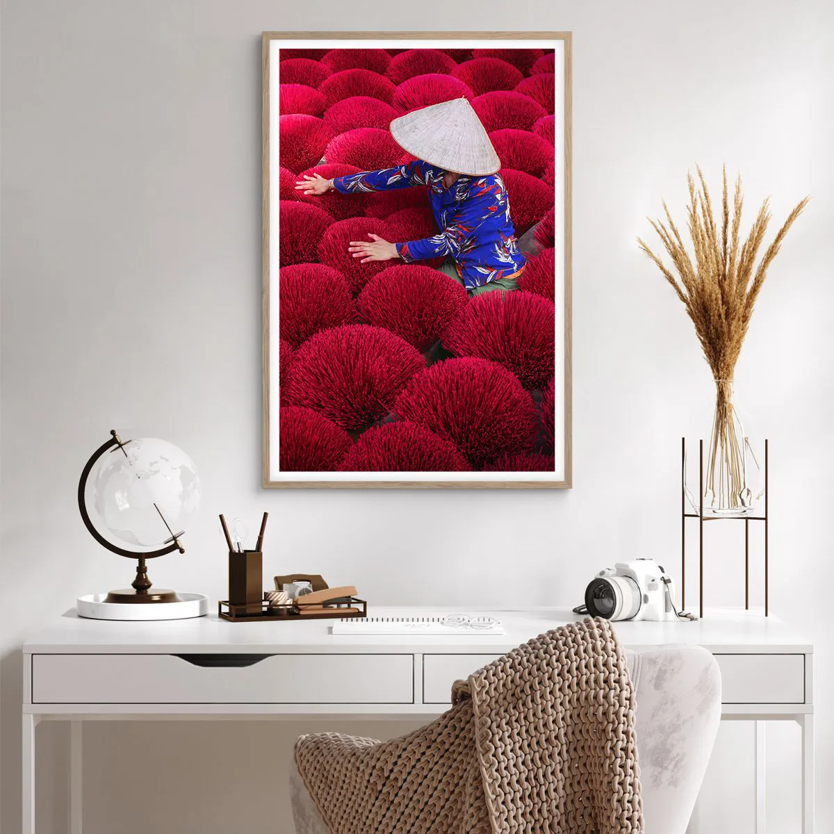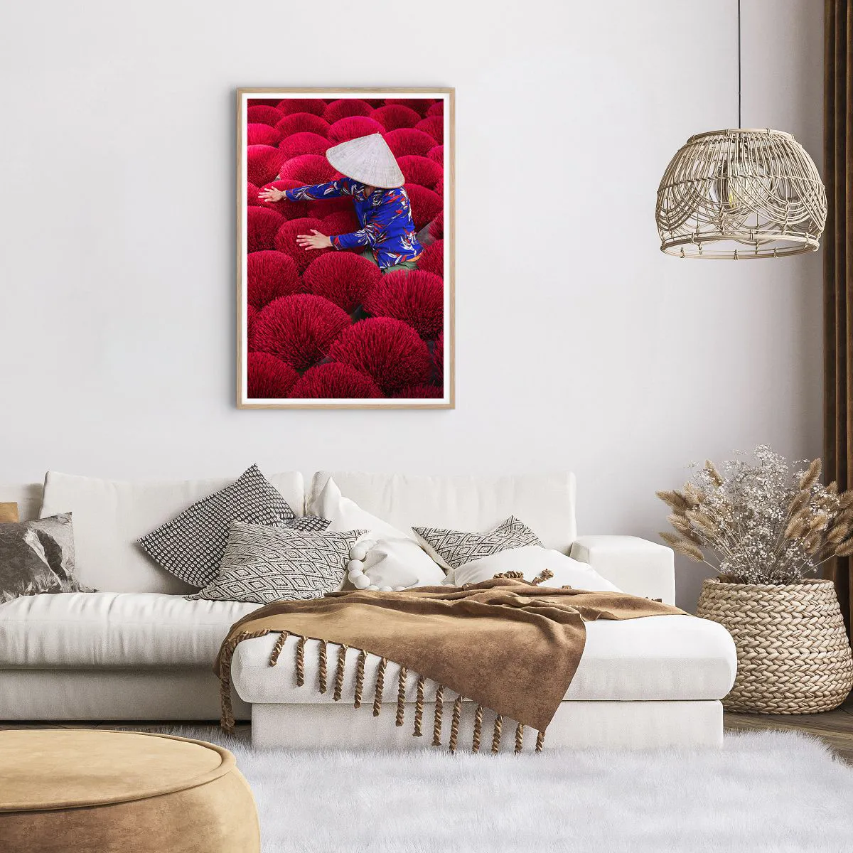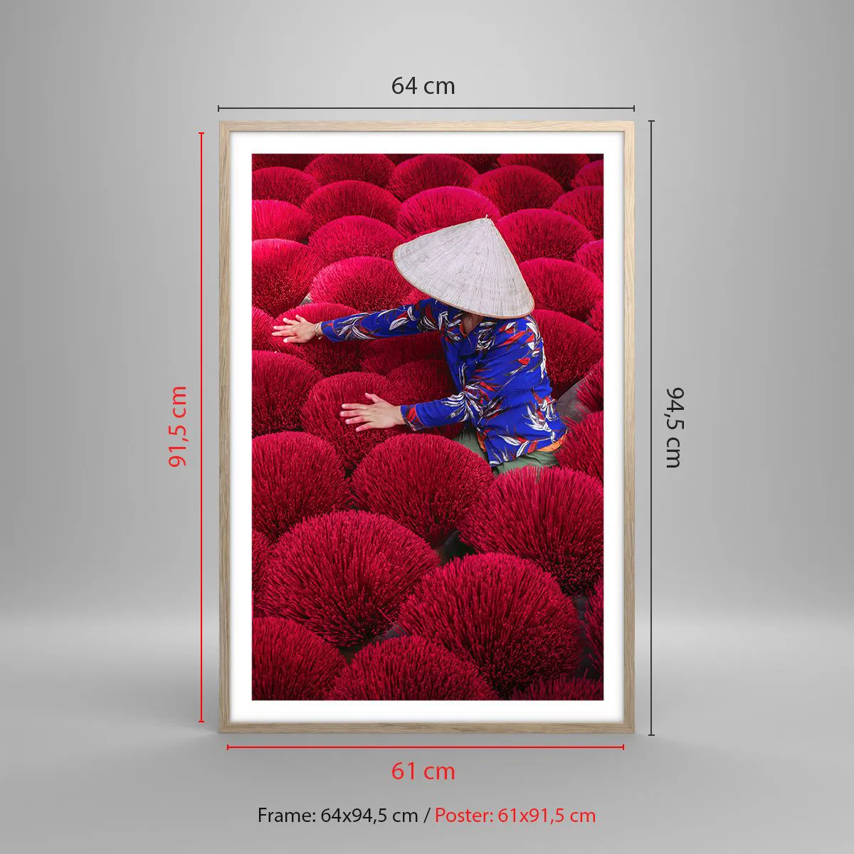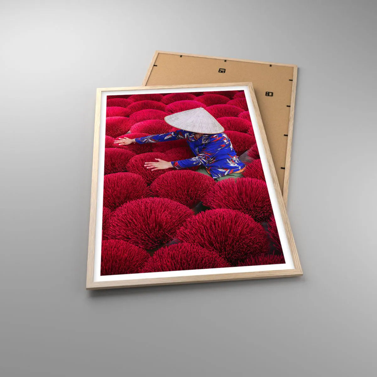 Plakat i ramme af lyst egetræ - I en rismark - 61x91 cm