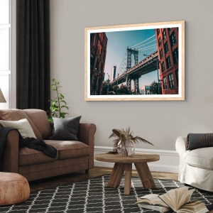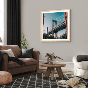 Plakat i ramme af lyst egetræ - Over byens bølger - 60x60 cm