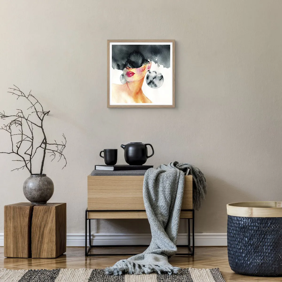 Plakat i ramme af lyst egetræ - Hemmeligheden bag elegance - 40x40 cm