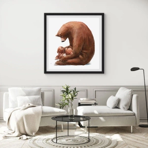- Denne charmerende plakat forestiller en bjørnemor, der krammer to små bjørne. Denne scene, fyldt med kærlighed og ømhed, er perfekt til et børneværelse og skaber en atmosfære af fred og tryghed.