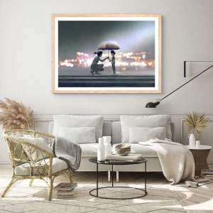 Plakat i ramme af lyst egetræ - Og alt er godt nu - 91x61 cm