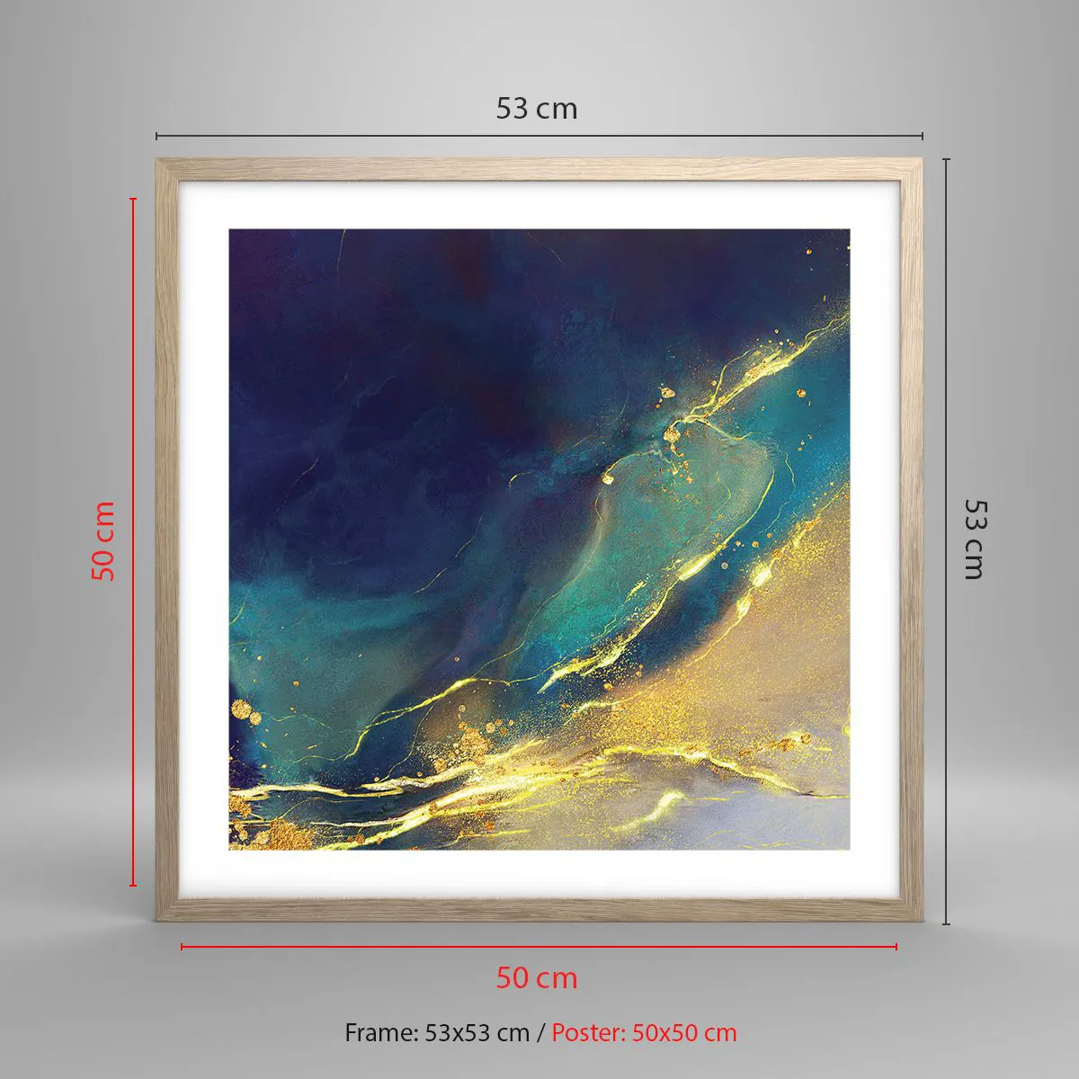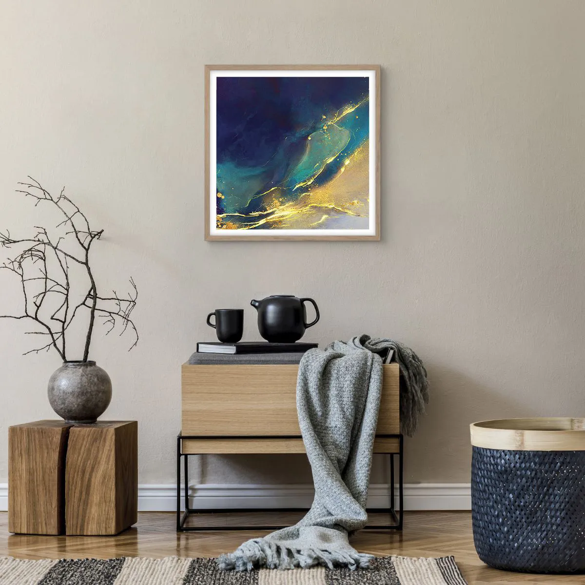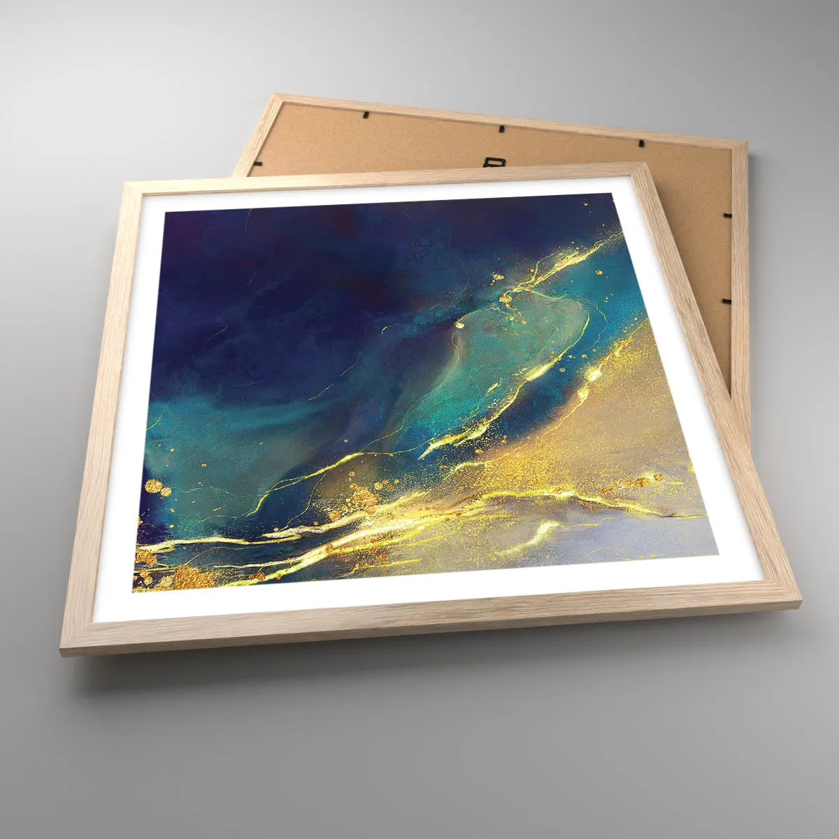 Plakat i ramme af lyst egetræ - Gylden marsk - 50x50 cm