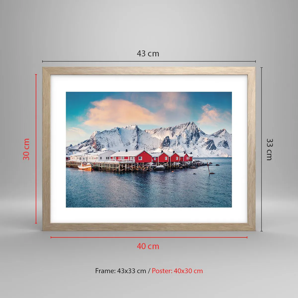 Plakat i ramme af lyst egetræ - Nordlig tilbagetrækning - 40x30 cm