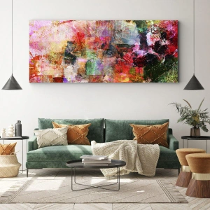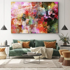 Maleriets baggrund er rig og kompleks og giver mulighed for en række forskellige fortolkninger. Farvernes intensitet og deres samspil skaber en følelse af bevægelse og energi, der perfekt indfanger essensen af abstrakt kunst. Maleriet introducerer en atmosfære af kreativitet og inspiration til ethvert interiør.
