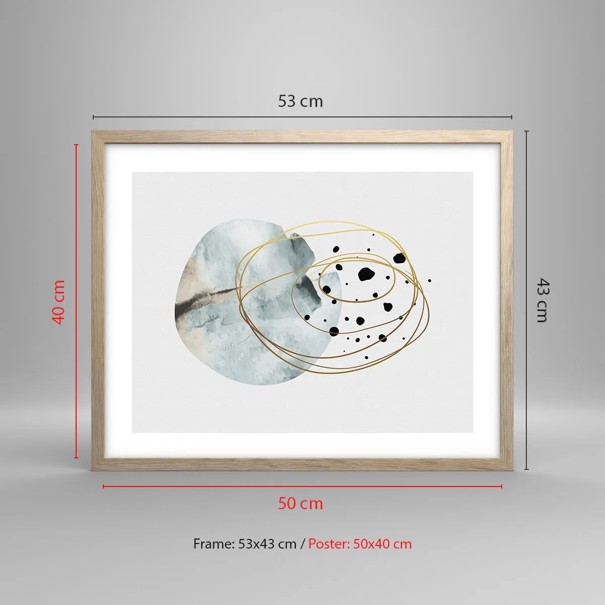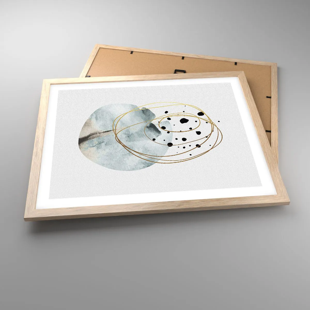 Plakat i ramme af lyst egetræ - I rummets favntag - 50x40 cm