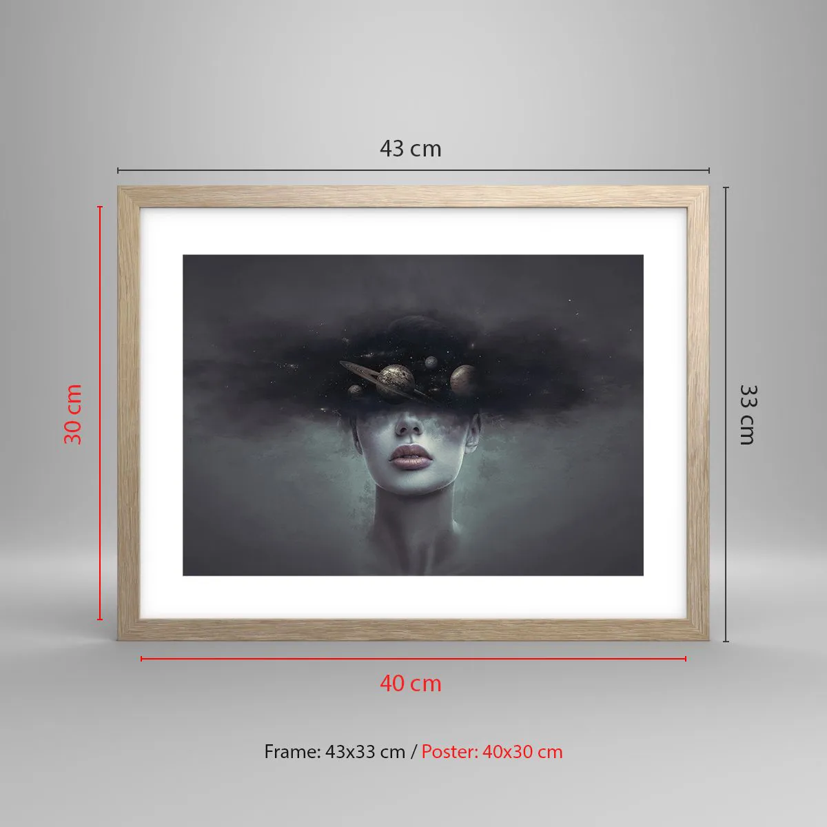 Plakat i ramme af lyst egetræ - Og planeterne er ved at gå amok... - 40x30 cm