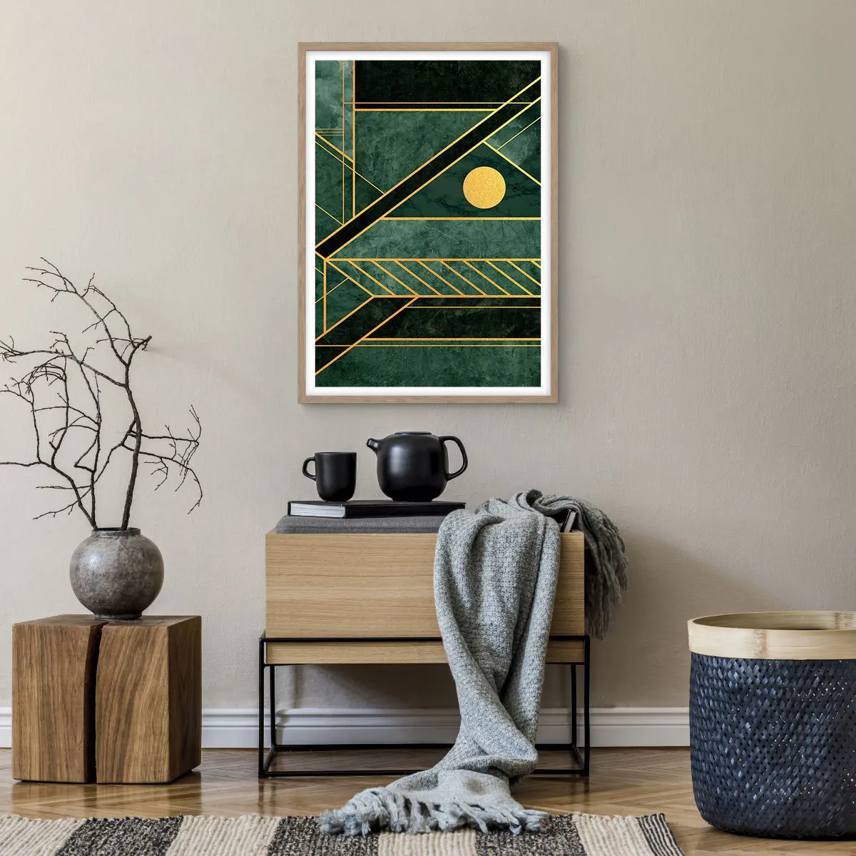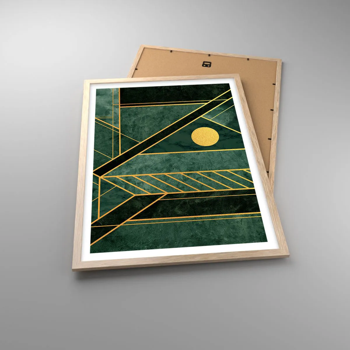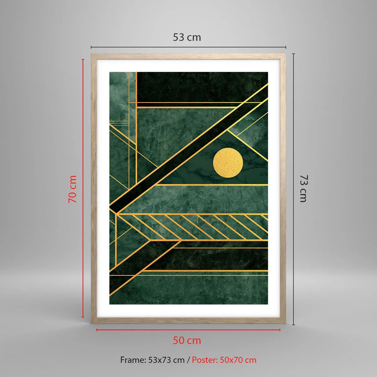 Plakat i ramme af lyst egetræ - Dynamikken i guld og azurblå - 50x70 cm