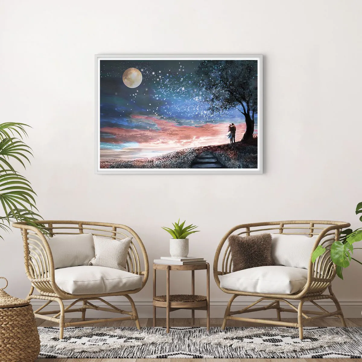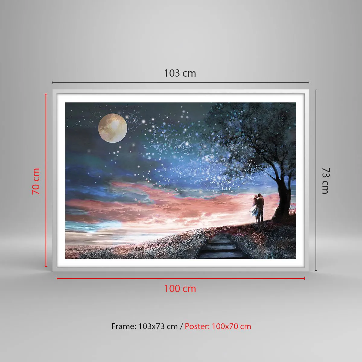 Den indrammede plakat er klar til at blive hængt op på væggen. Trykt på 200 g/m2 premium-papir af høj kvalitet. Den moderne og stilfulde ramme er lavet af MDF med en bredde på 2 cm. Bagsiden af maleriet er beskyttet af en stiv 2 mm tyk HDF-plade. Den indrammede plakat er let og leveres med en bøjle til nem montering. Hver ramme er udstyret med et let og ubrydeligt vindue af klart akrylplexiglas, der ikke kan brydes.