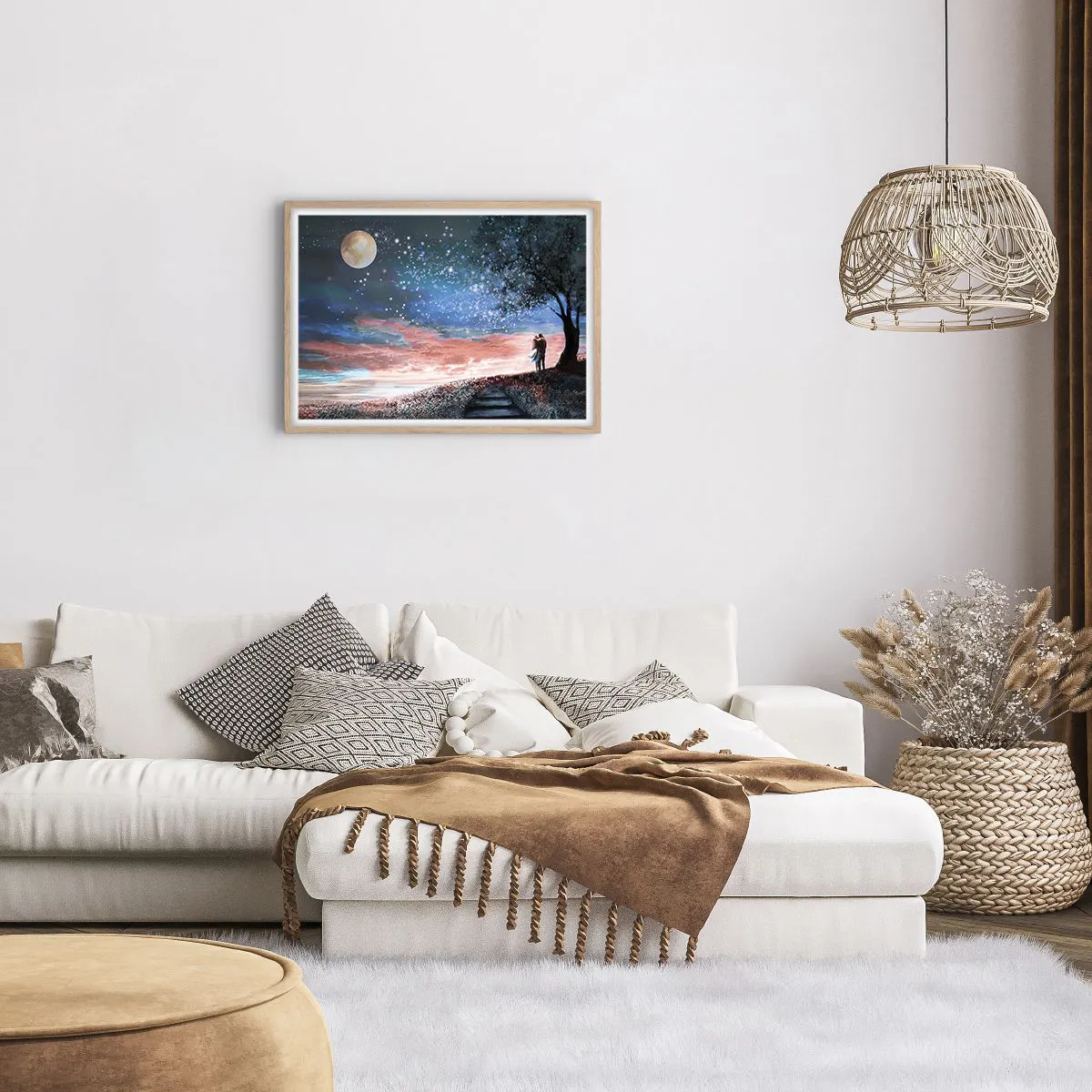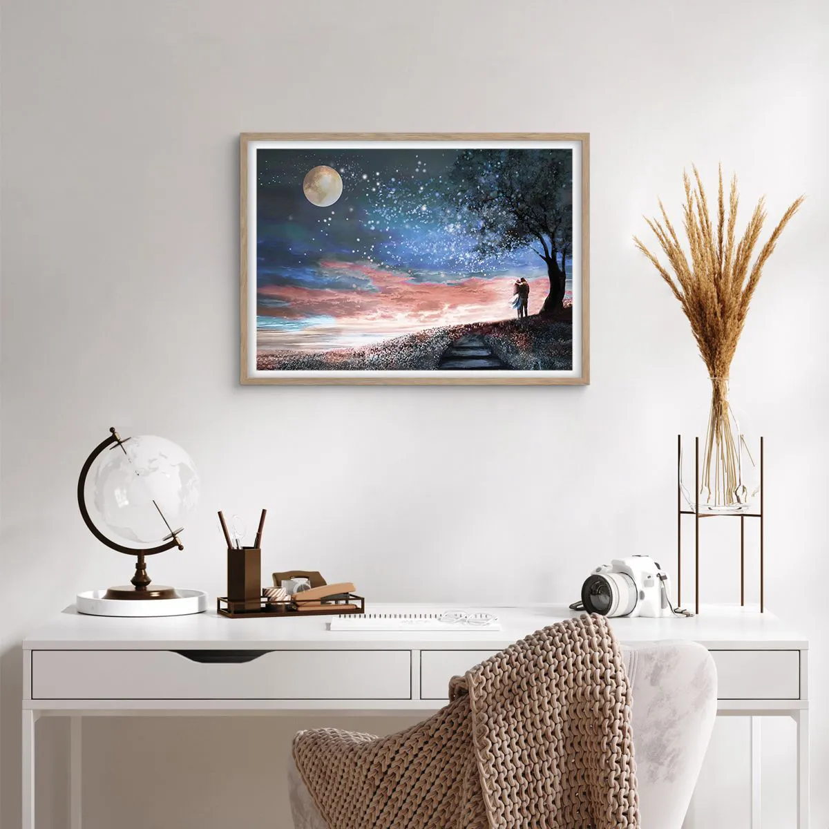 Den indrammede plakat er klar til at blive hængt op på væggen. Trykt på 200 g/m2 premium-papir af høj kvalitet. Den moderne og stilfulde ramme er lavet af MDF med en bredde på 2 cm. Bagsiden af maleriet er beskyttet af en stiv 2 mm tyk HDF-plade. Den indrammede plakat er let og leveres med en bøjle til nem montering. Hver ramme er udstyret med et let og ubrydeligt vindue af klart akrylplexiglas, der ikke kan brydes.