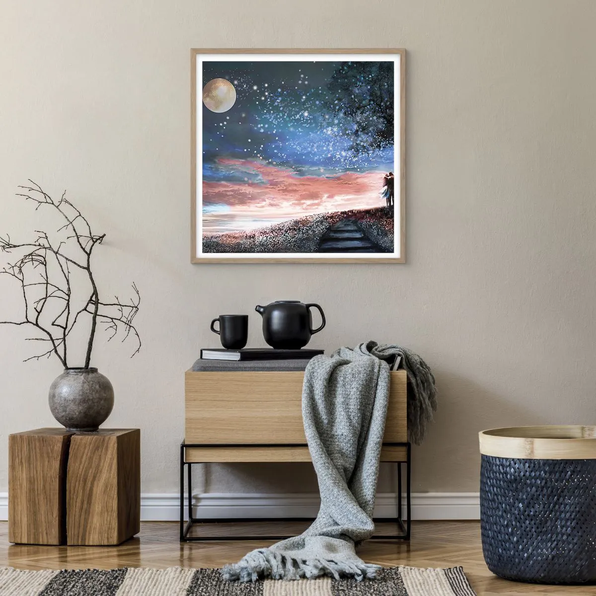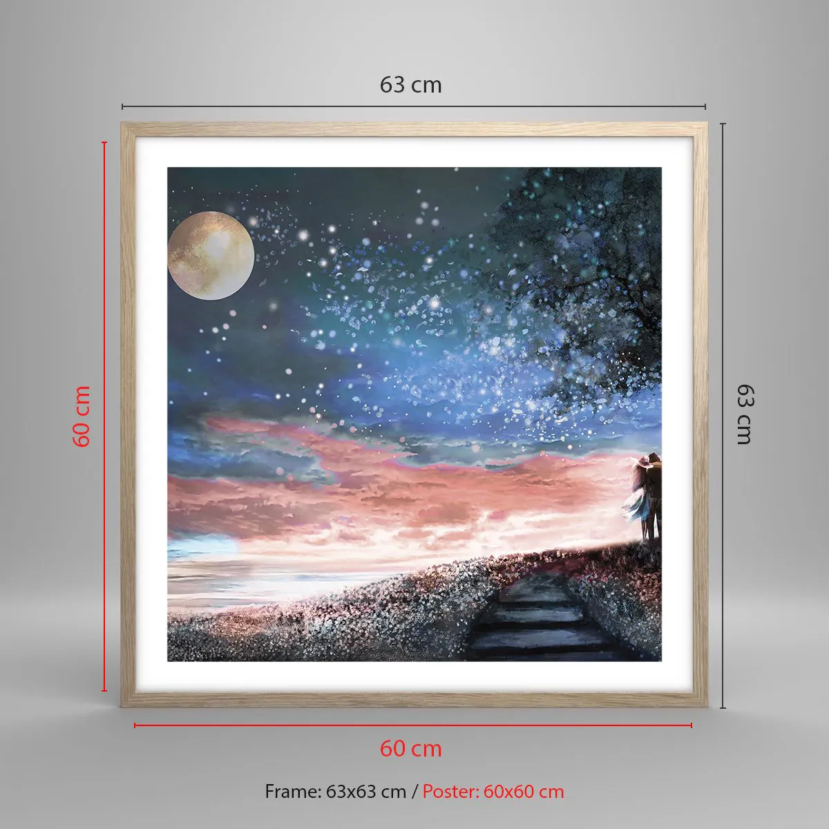 Plakat i ramme af lyst egetræ - En stjernepræstation - 60x60 cm