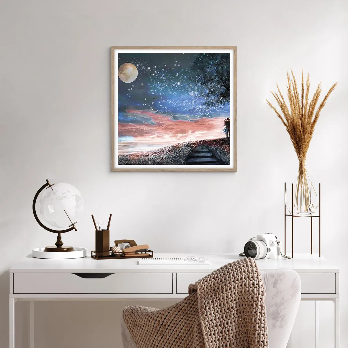 Den indrammede plakat er klar til at blive hængt op på væggen. Trykt på 200 g/m2 premium-papir af høj kvalitet. Den moderne og stilfulde ramme er lavet af MDF med en bredde på 2 cm. Bagsiden af maleriet er beskyttet af en stiv 2 mm tyk HDF-plade. Den indrammede plakat er let og leveres med en bøjle til nem montering. Hver ramme er udstyret med et let og ubrydeligt vindue af klart akrylplexiglas, der ikke kan brydes.