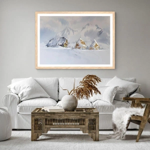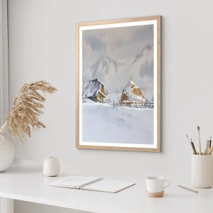Plakat i ramme af lyst egetræ - I en sneklædt dal - 50x70 cm