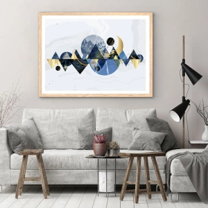 Plakat i ramme af lyst egetræ - Geometrisk landskab - 30x30 cm