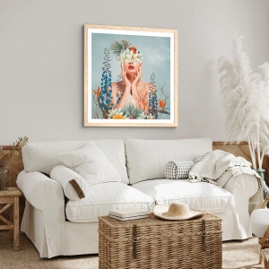 Plakat i ramme af lyst egetræ - Kvinde blomst - 91x61 cm