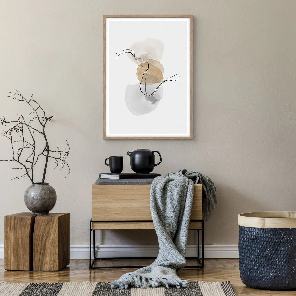 Plakat i ramme af lyst egetræ - Perler i luften - 50x70 cm