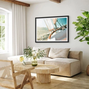 Plakat i sort ramme - En yacht for fulde sejl på åbent hav i solskin - 50x70cm - Under fulde sejl - Moderne vægdekoration til stue og soveværelse ARTTOR