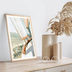 Plakat i ramme af lyst egetræ - Under fulde sejl - 100x70 cm