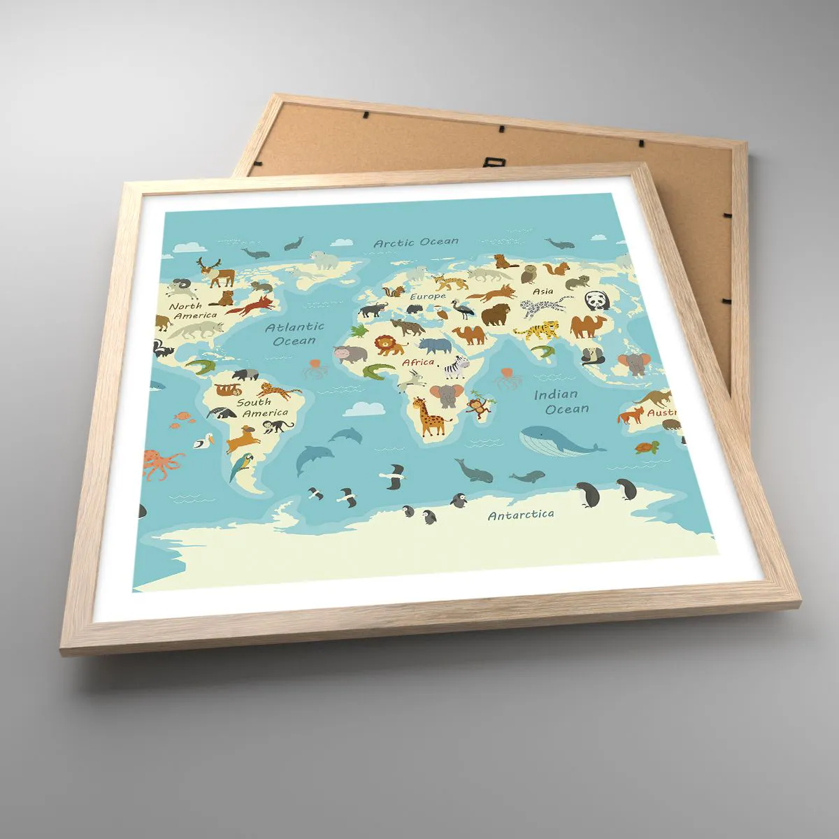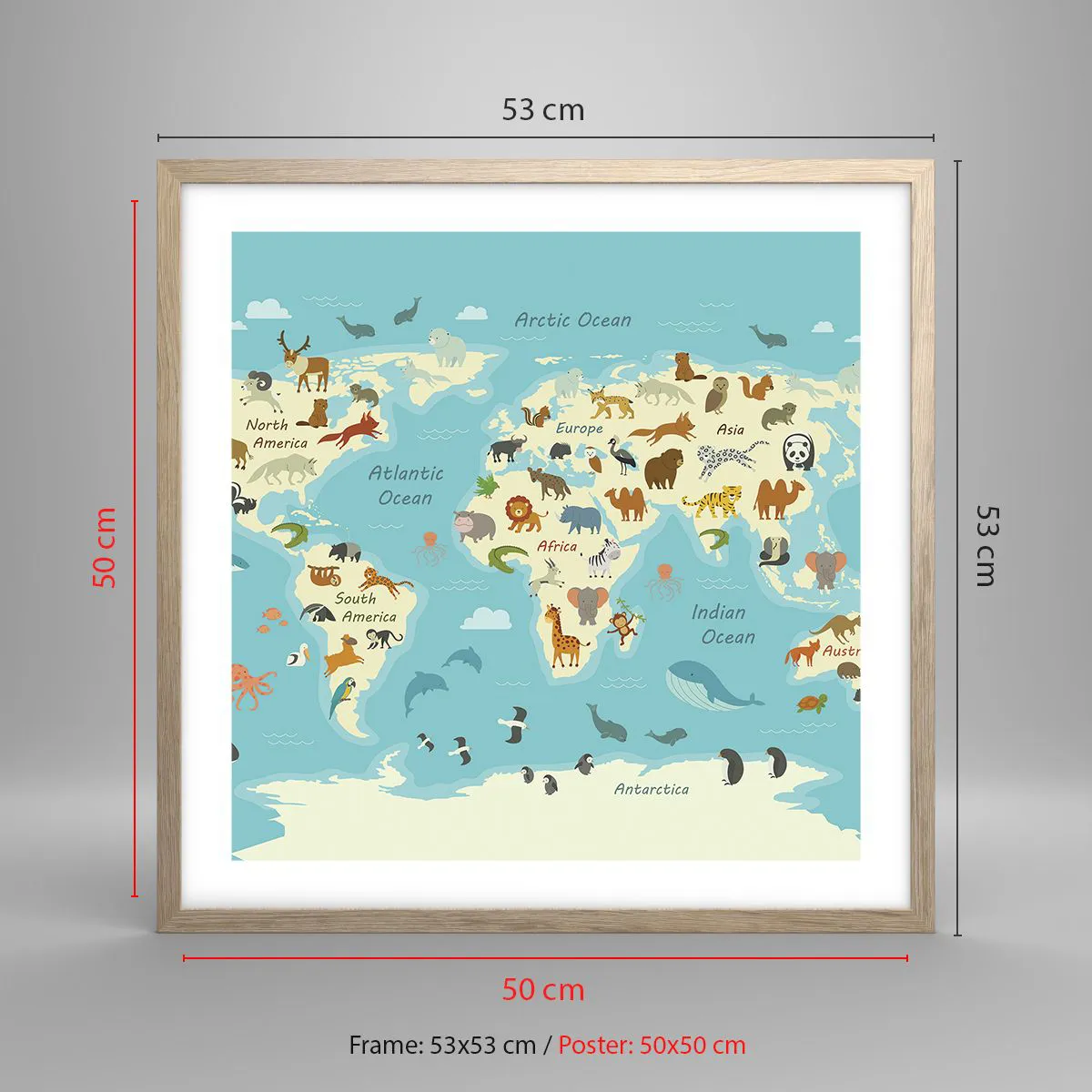 Plakat i ramme af lyst egetræ - Gode naboer - 50x50 cm