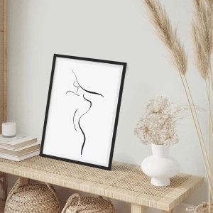 Plakat i sort ramme - En minimalistisk silhuet af en kvinde tegnet med en sort linje. - 50x70cm - Flygtig som en bølge - Moderne vægdekoration til stue og soveværelse ARTTOR