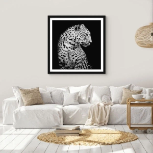 Plakat i sort ramme - Sort-hvidt portræt af en leopard på en sort baggrund - 50x70cm - Den rigtige profil er perfekt! - Moderne vægdekoration til stue og soveværelse ARTTOR