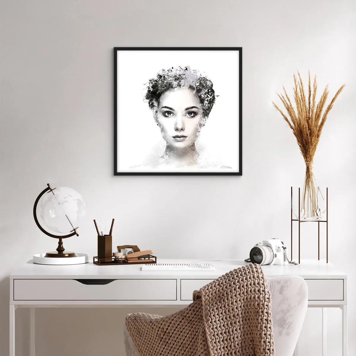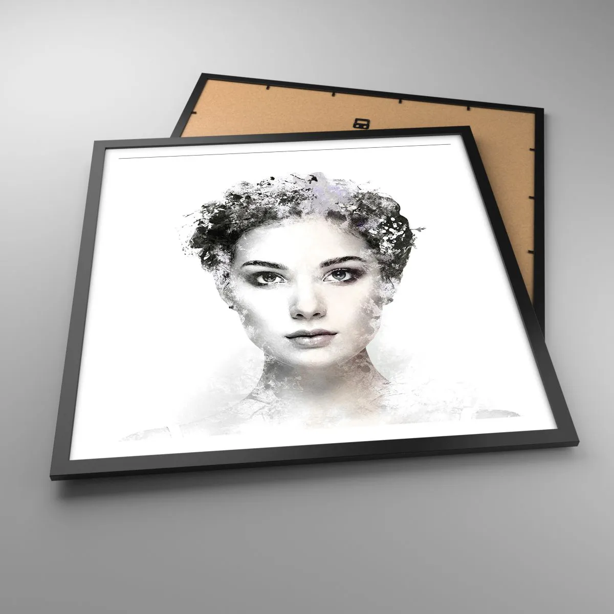 Plakat i sort ramme - Et meget stilfuldt portræt - 60x60 cm