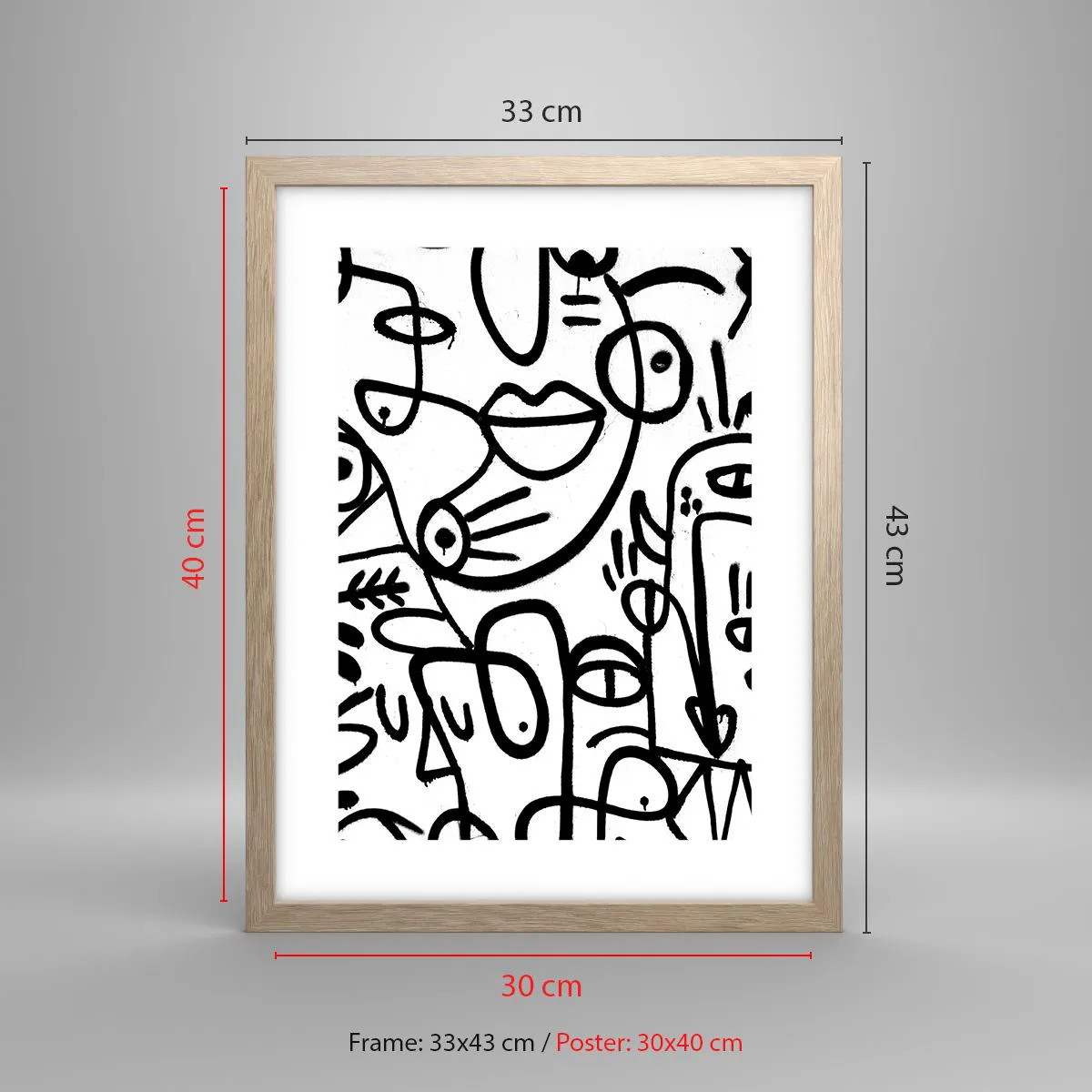Plakat i ramme af lyst egetræ - Ansigter og luftspejlinger - 30x40 cm