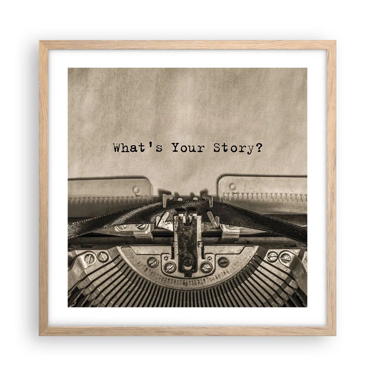 Plakat i ramme af lyst egetræ - Fortæl mig - 50x50 cm