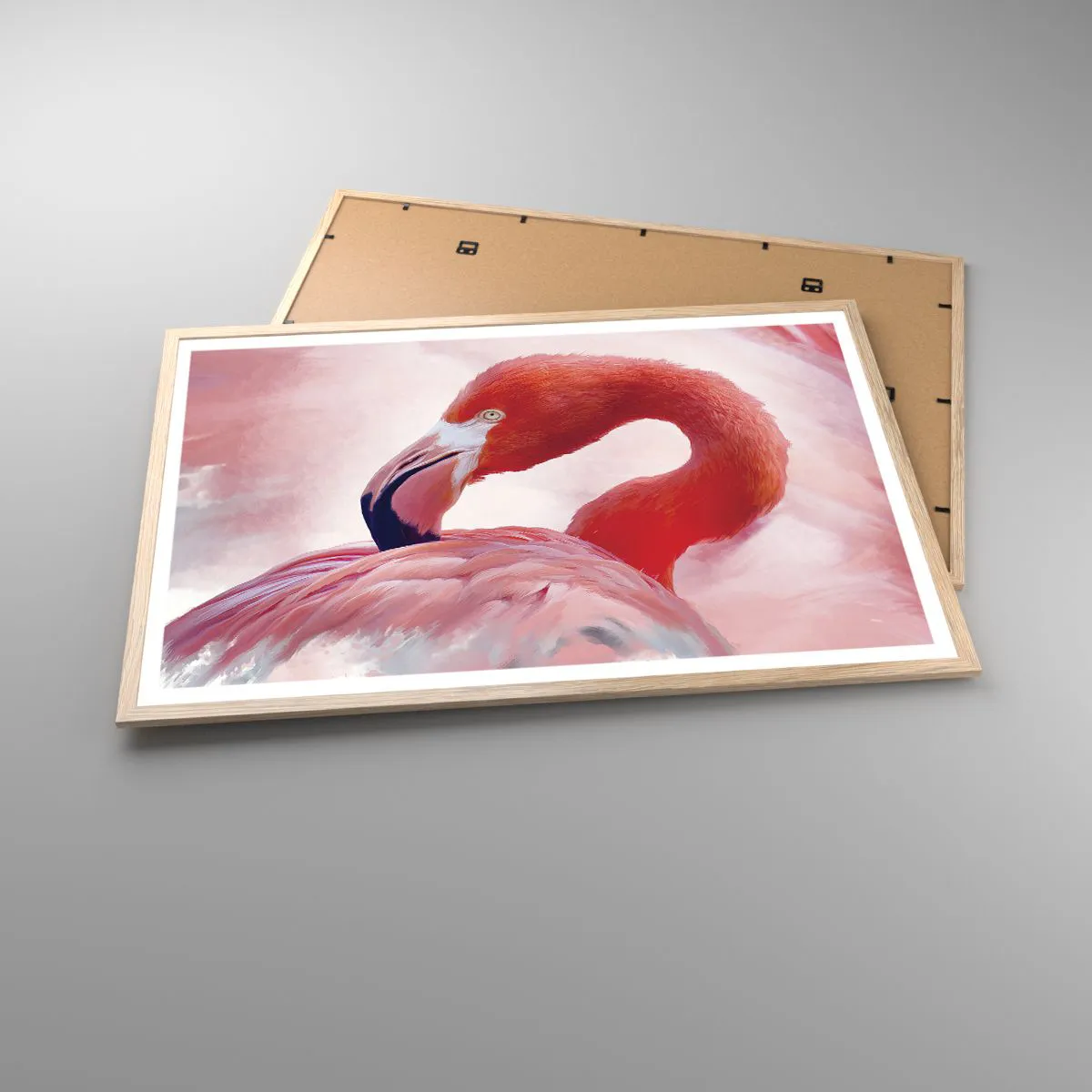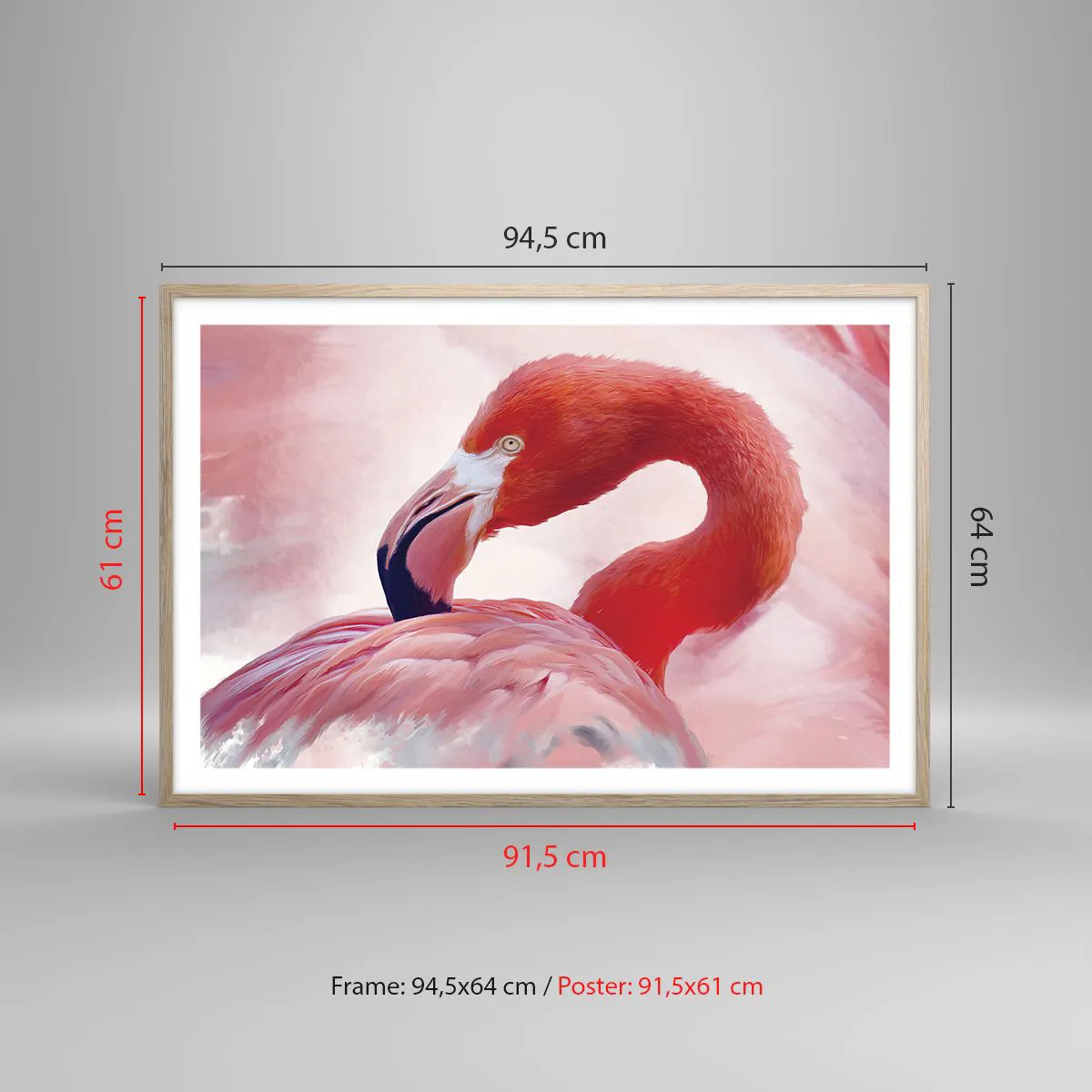 Plakat i ramme af lyst egetræ - Fugleskønhed - 91x61 cm