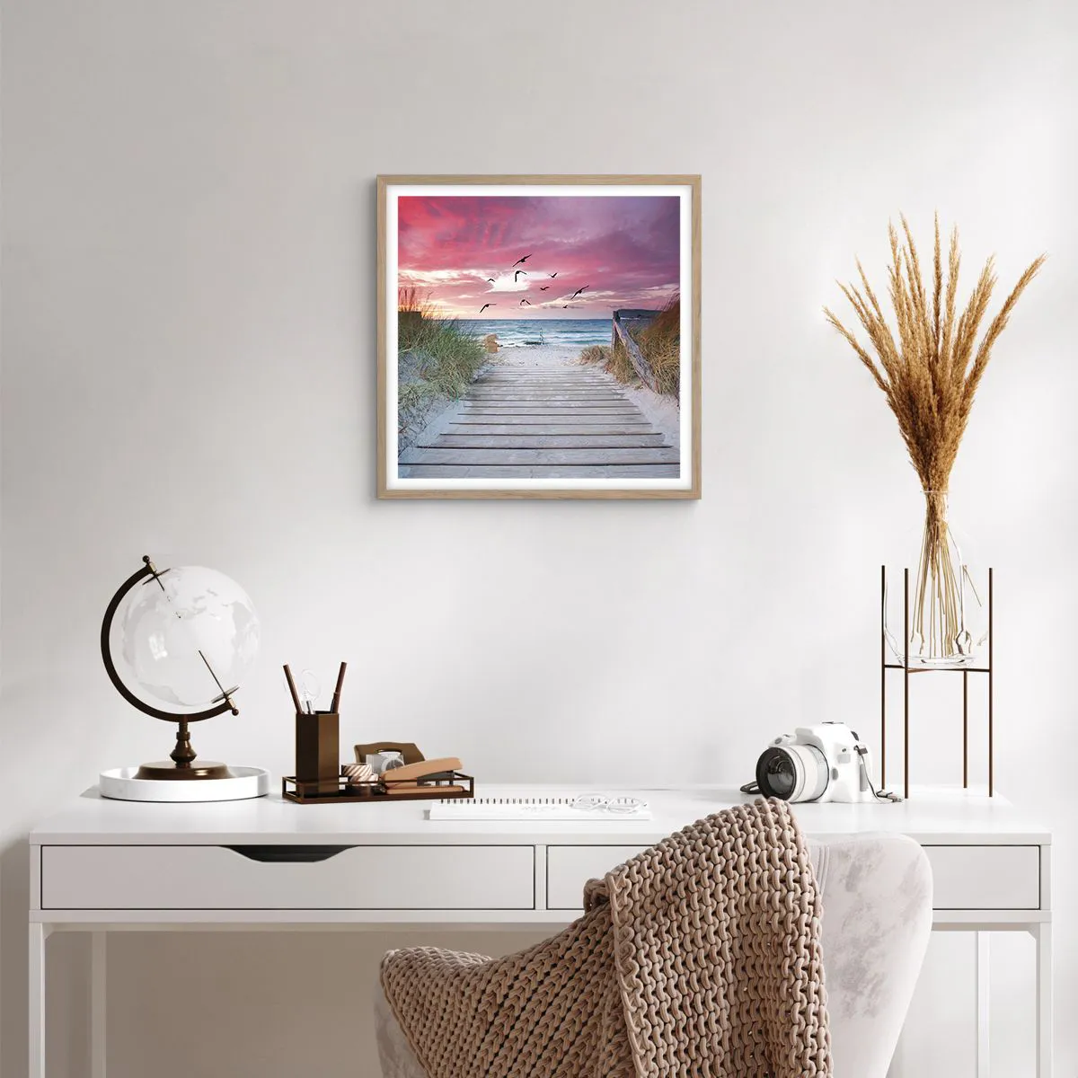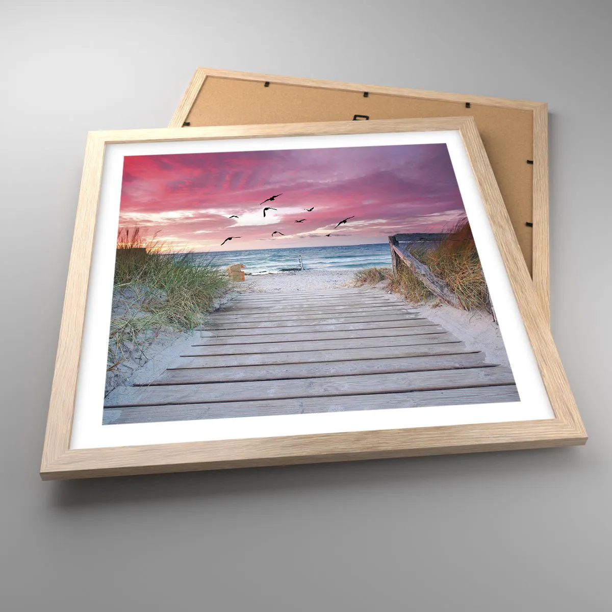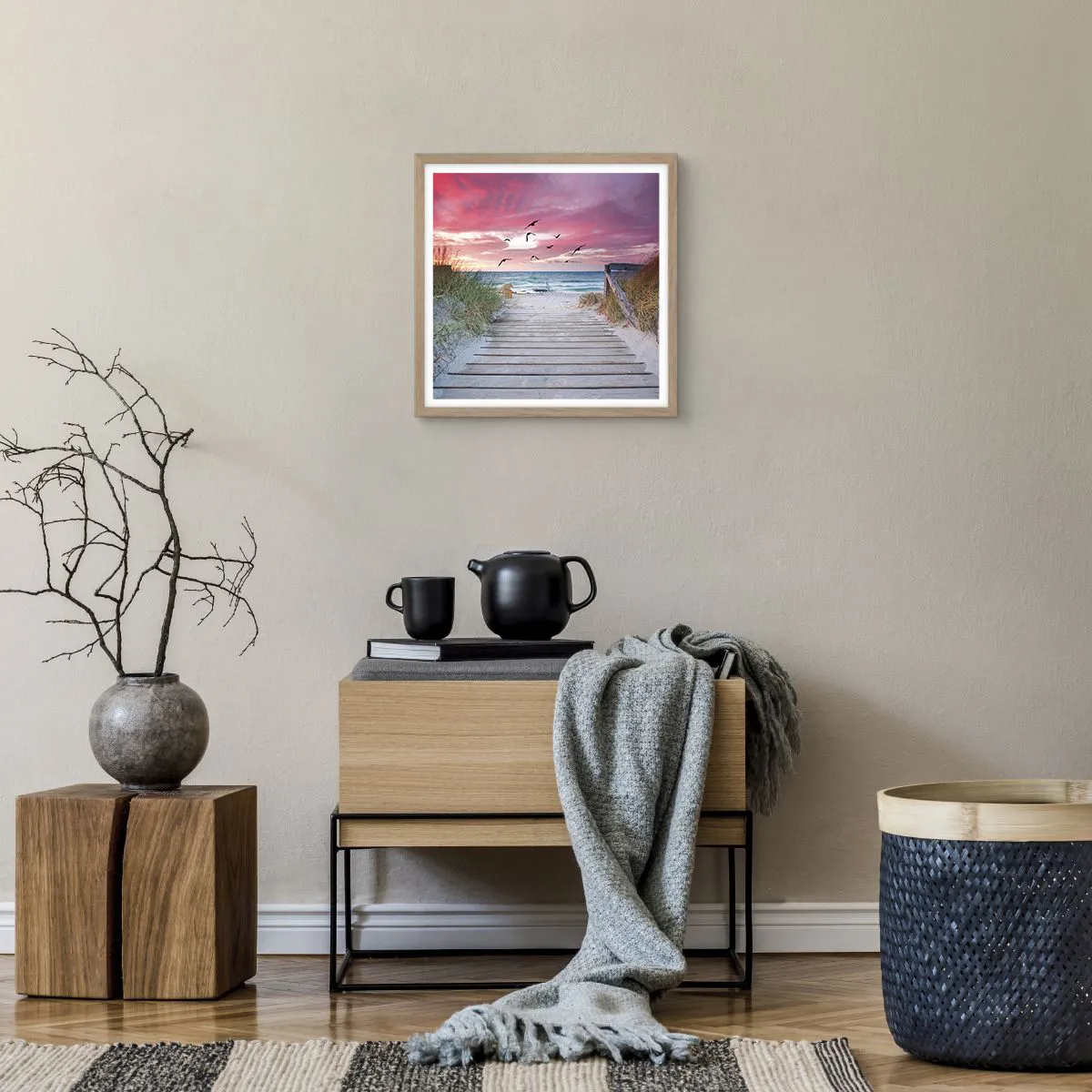 Plakat i ramme af lyst egetræ - Baltisk indtryk - 40x40 cm