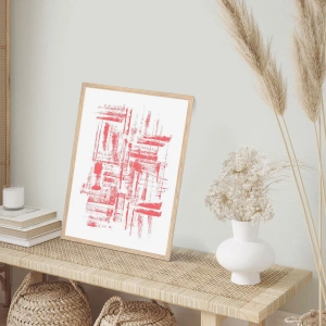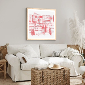 Plakat i ramme af lyst egetræ - Rød by - 70x50 cm