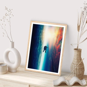 Plakat i ramme af lyst egetræ - Over for universet - 50x50 cm