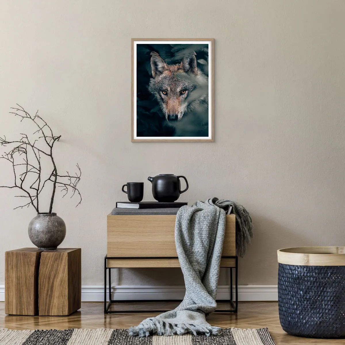 Plakat i ramme af lyst egetræ - Jæger - 40x50 cm