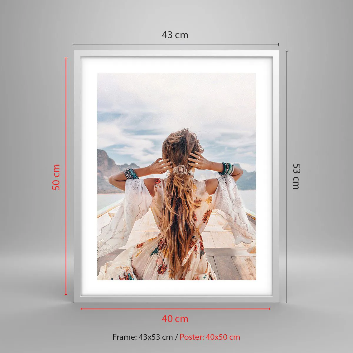 Plakat i hvid ramme - På vej mod lykken - 40x50 cm