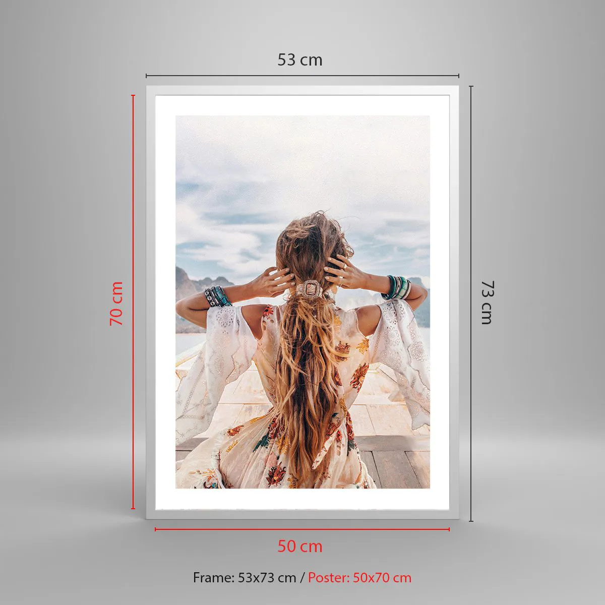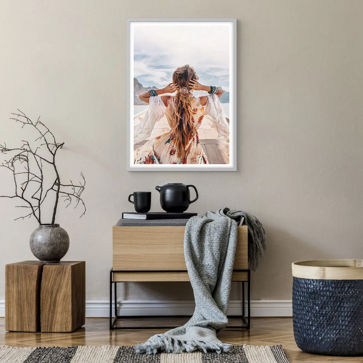 • Landskab, Kvinde på en båd, Boho, Mennesker, mode, rejser, Til spisestuen, Til hallen, Til stuen, Til soveværelset, , Hvid, brun, grå, Lodret