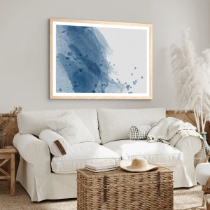 Plakat i ramme af lyst egetræ - Blå tyl - 100x70 cm