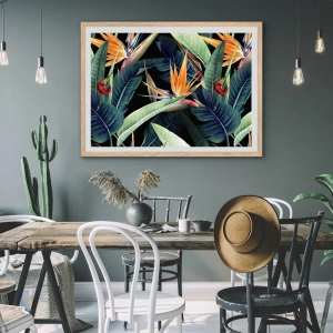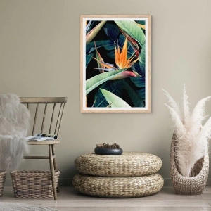 Plakat i ramme af lyst egetræ - Flammeblomster i troperne - 70x50 cm